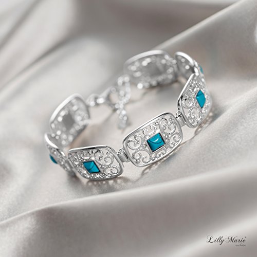LILLY MARIE LillyMarie Donne Bracciale Argento vero pietra turchese turchese Lunghezza flessibile scatola regalo in legno di alta qualità Regali per i partner