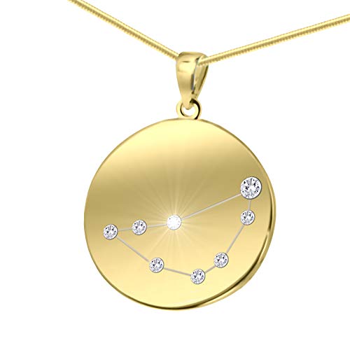 LillyMarie Collana in Argento Massiccio Dorato Placcato oro Ciondolo con Segno Zodiacale Capricorno Swarovski Elements Originale