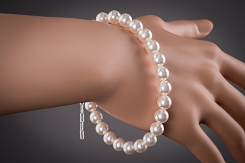 LillyMarie Donne argento Bracciale Argento 925 Perle della collezione Swarovski Elements lunghezza regolabile Custodia per gioielli Regalo fidanzata