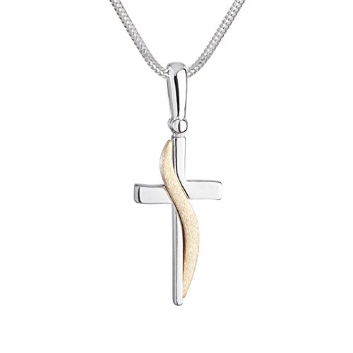 LillyMarie Donne Argento Collana Vero Ciondolo Croce Dorato Lunghezza Regolabile Custodia in Legno di Alta Qualità Regali Compleanno per le