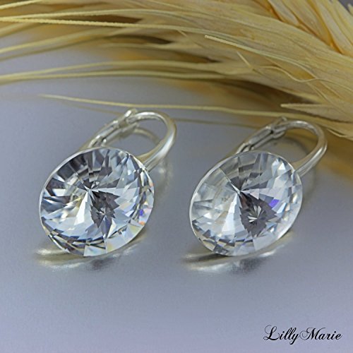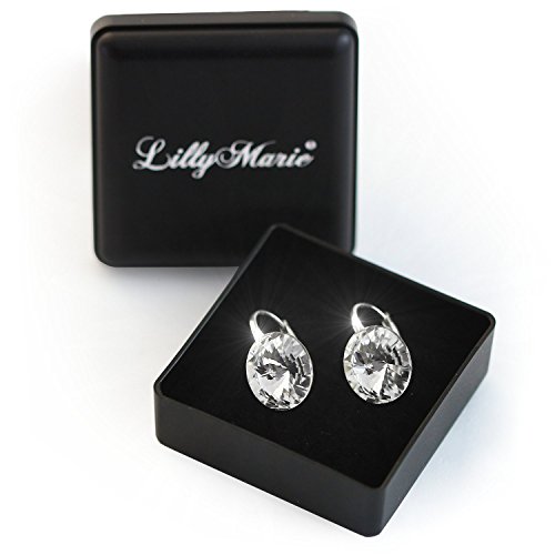 LillyMarie Donne Argento Orecchini Sterling 925 Trasparente Swarovski Elements Originali Rotondi Sacchetto per Gioielli Regali i Partner