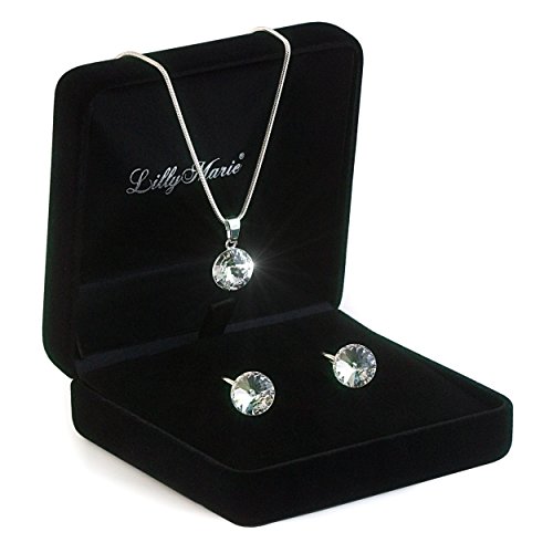 LillyMarie Donne Argento Parure Vero Ciondolo Originale di Swarovski Elements Trasparente Lunghezza Regolabile Regalo Natale per Moglie o Fidanzata