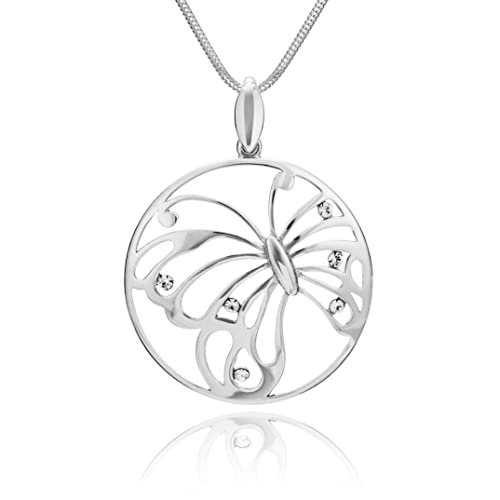 LillyMarie Donne Catena argento lunga Argento 925 Ciondolo Farfalla Swarovski Elements originali lunghezza regolabile Custodia per gioielli Regali per i partner