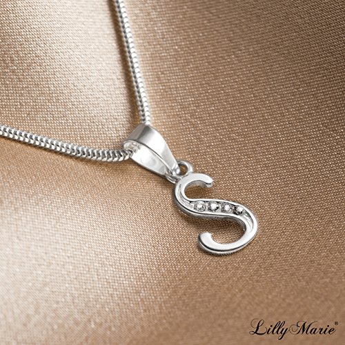 LillyMarie Donne Catena Argento Sterling 925 Swarovski Elements Originali Lettera Iniziale S Trasparente Lunghezza Regolabile Piccoli Regali per le