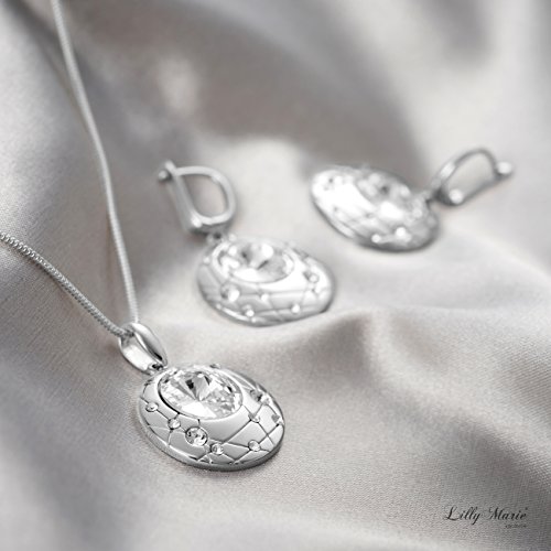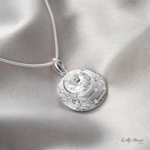 LillyMarie Donne gioielli parure Argento sterling 925 ciondolo rotondo Swarovski Elements originali lunghezza regolabile custodia in legno di alta qualità Idee regalo per la donna