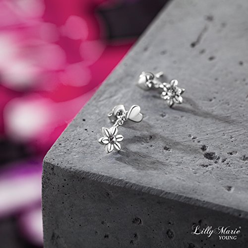 LillyMarie Donne Orecchini D'argento Argento 925 Trasparenti Swarovski Elements Originali Cuore Fiore Doppi Sacchetto per Gioielli Regalo Fidanzata
