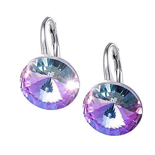 LillyMarie Donne Orecchini da Donna Argento 925 Multicolore Viola Swarovski Elements Originali Rotondi Confezione Regalo Regali di Compleanno per le