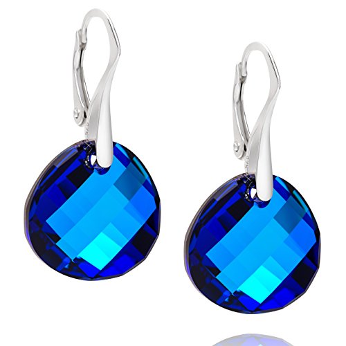 LillyMarie Donne Orecchini da donna Argento sterling 925 blu Swarovski Elements originali Rotondi Sacchetto stoffa Regalo per le donne