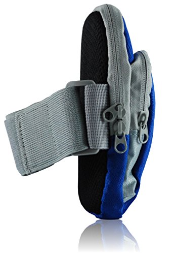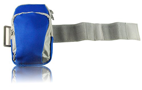 Lilware Universale Esterno e Interno Fascia Sportiva Da Braccio Per Vari Dispositivi Meno Di 5.5" Pollici. Protezione Leggero Attività Mini Borsa Custodia con Due Tasche e Sicura Chiusura del Velcro. Blu / Grigio