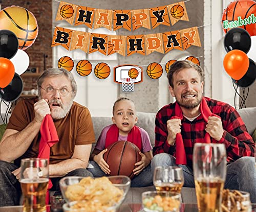 Lilwemen Pallacanestro Decorazioni per feste - Striscione per feste di compleanno, pallacanestro e cerchio, 12 pezzi topper per torta e 34 palloncini per bambini ragazzi e ragazze a tema basket