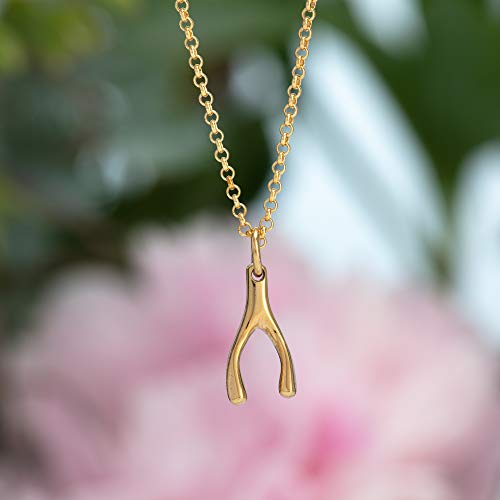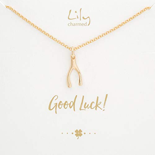 Lily Charmed - Collana dorata a forma di osso dei desideri con biglietto "Good Luck"