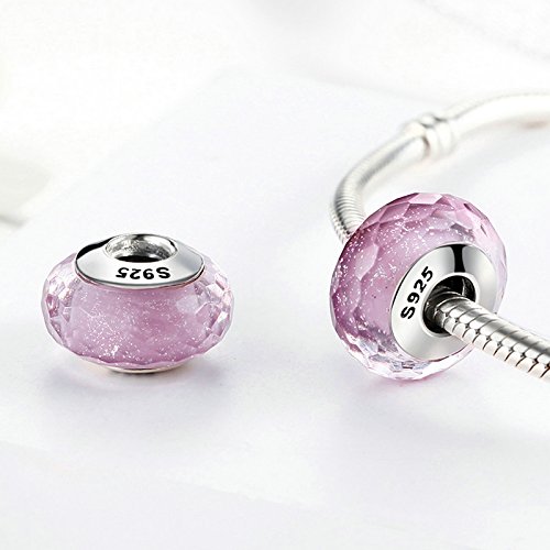 Lily Jewelry - Ciondolo in argento Sterling 925 con ciondolo in vetro di Murano rosa, adatto a braccialetti Pandora