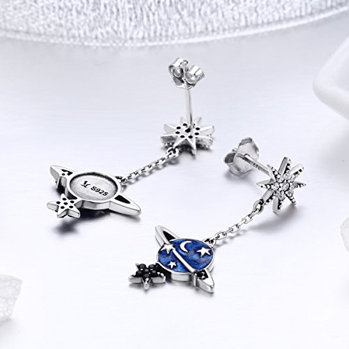 Lily Jewelry Mysterious Planet - Orecchini pendenti in argento Sterling 925, smaltati, colore: Blu