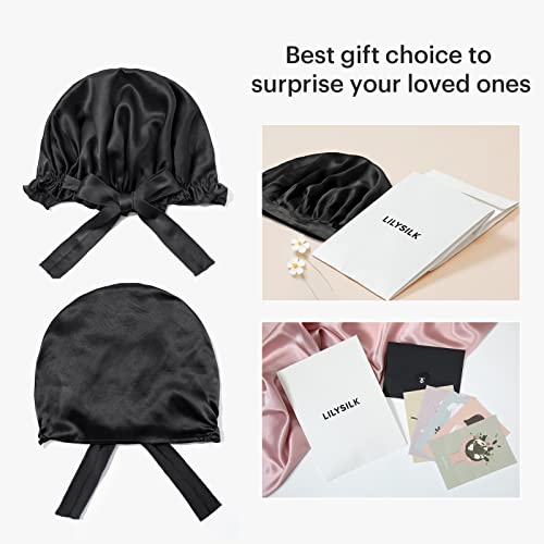 LILYSILK Berretto da notte in seta super morbida, per la cura dei capelli, traspirante, con confezione a nastro,, Nero, Taglia unica
