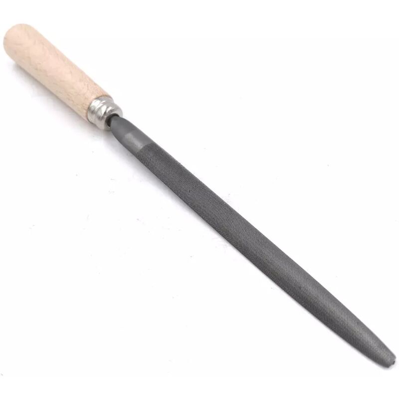 Lima CORRADI Mezzatonda con manico, per la rifinitura di precisione di chiavi appena fresate. Misure Lima: Lunghezza Pollici 4 Lunghezza mm 100 Sezione: mm 10 x 0,6 Misure Manico: Diametro 15 mm Lunghezza 60 mm