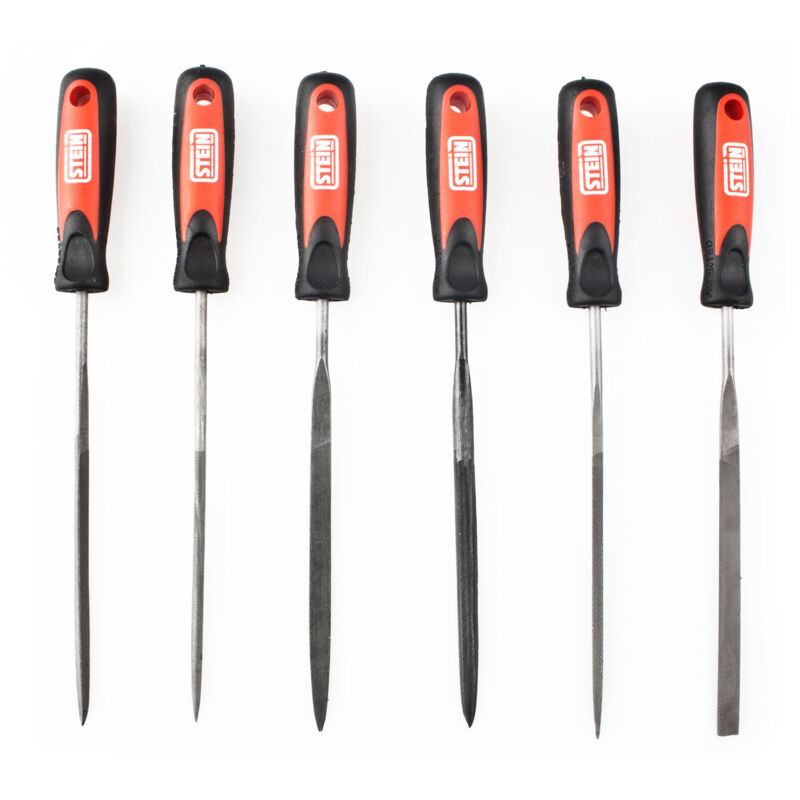 Lime STEIN in acciaio al carbonio temperato. Manico bimateriale con presa ottimale. Indicate per lavori di sgrossatura di precisione. Set con custodia da sei fascicoli assortiti.