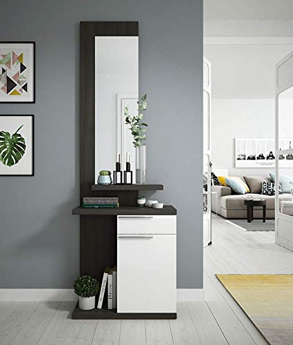 Lima Mobile da Ingresso, Mobile con 3 Ripiani E Specchio, Mobiletto in Legno, Bianco E Grigio Cenere