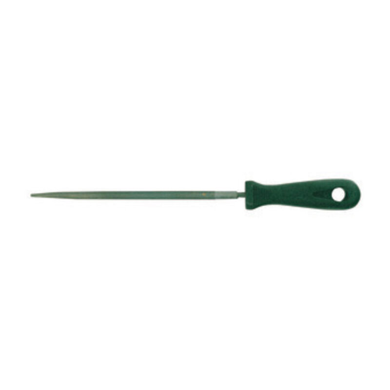 Prodotte secondo lo standard ISO 234, ma con durezze maggiori. Taglio bastardo. Forma tonda. Utilizzate in officina, nel tempo libero e nella scuola per lavori generici su acciaio, ferro, metalli non ferrosi. Con manico. Lunghezza 10 (250 mm). Confezione blister.