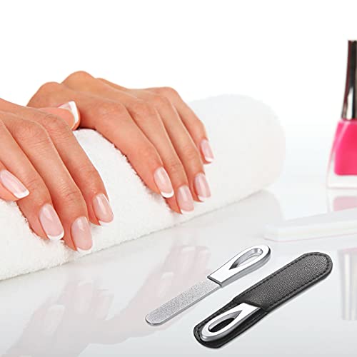 Servirti a lungo: queste lime per unghie da viaggio sono realizzate in materiale di acciaio inossidabile e queste custodie per lime per unghie sono realizzate in materiale in pelle PU, di alta qualità e affidabili, non facili da rompere o deformare, possono resistere a lungo e queste le custodie in pelle possono isolare efficacemente queste lime per unghie dall'acqua e dall'aria ed evitare la ruggine