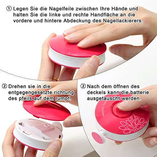 Facile da usare: Basta aprire il coperchio posteriore, inserire le batterie e premere il pulsante per utilizzare questa lima elettrica per unghie per bambini. Funzione semplice per tagliare le unghie del bambino in modo facile e veloce. La lima elettrica per unghie non deve essere ricaricata e richiede solo una batteria (1 x AAA) per essere utilizzata. Può essere utilizzata a lungo.(Batterie non incluse)