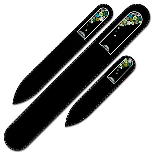 Set di 3 lima per unghie in vetro decorato a mano con Swarovski Elements | Vetro di Boemia temperato originale, garanzia a vita, in custodia di velluto nero