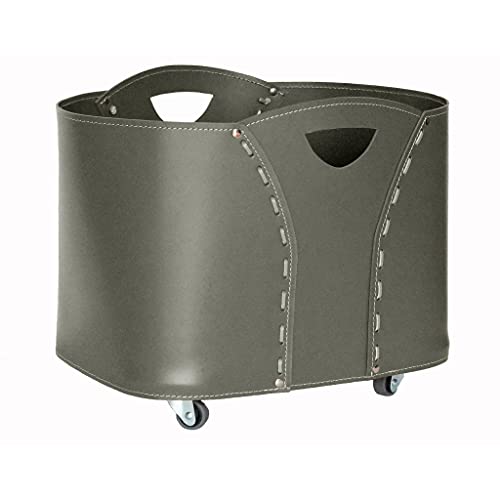 Limac Design Volta portalegna in Cuoio, Borsa Porta Legna da Interno, Cesto per Legna da ardere, con Ruote gommate, Prodotto, Tortora