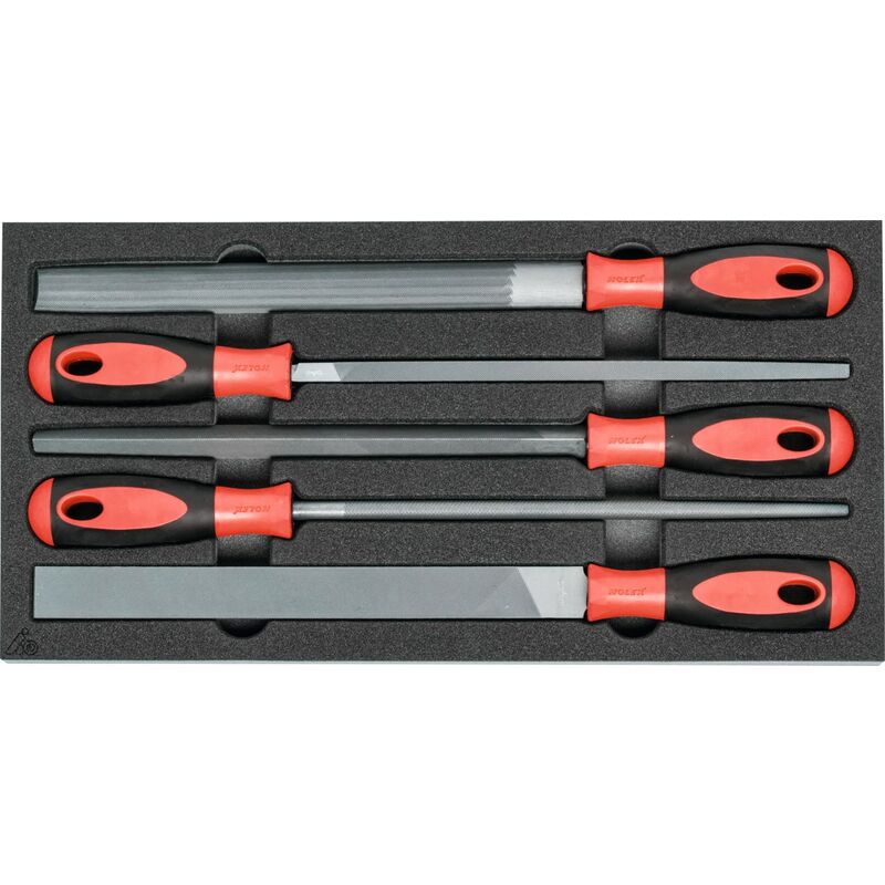 Esecuzione: Assortimenti standard di utensili in alloggiamenti in espanso rigido bicolore in PE. La struttura non porosa dell'espanso è impermeabile e resistente agli oli. Strato superiore color antracite, quello inferiore di contrasto color grigio mette in evidenza gli utensili mancanti. Fornitura: Inserto in espanso rigido vuoto n. art. 952001 Dim. 952210: 1 pz.Set di 5 lime HOLEX n. art. 517420 Dim. 250: 1 pz. Riempimento di un cassetto in G: 8×16Larghezza: 200 mmProfondità: 400 mmLarghezza in G: 8Profondità in G: 16
