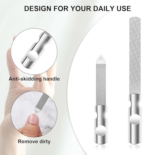 Design affidabile: la nostra lima per unghie in metallo è a doppia faccia.Il lato anteriore è per il taglio preciso e il levigatura delle superfici per unghie e il lato posteriore è per una rapida rimozione di chiodi spessi e l'archiviazione dei bordi per unghie.L'impugnatura è anti-skidding e la ghiaia sulla lima è abbastanza bene da lucidare le unghie.