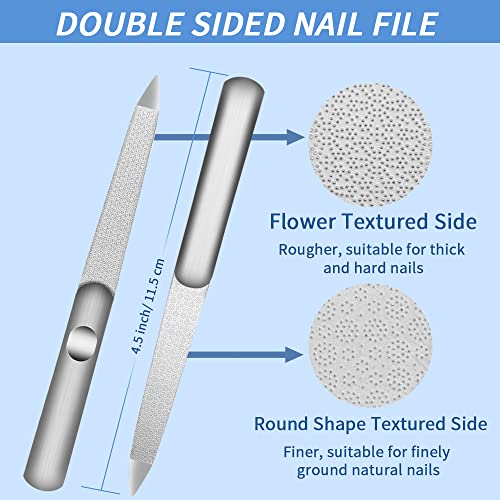 【Lime per Unghie Naturali】La lima per unghie in metallo su entrambi i lati ha due diversi grossi ed è adatta per unghie, unghie dei piedi e unghie naturali spesse e dure. Il lato strutturato a fiore è più ruvido per lucidare rapidamente le unghie;