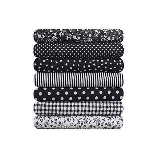 Limeow Tessuto Panno di Cotone Fai da Te Artigianale Tessuti Stampati da Cucito Stoffa Patchwork Patchwork Cotone Tessuto DIY 50 * 50 cm Cucito per Artigianato Patchwork Nero Classico 7 Pezzi (Nero)
