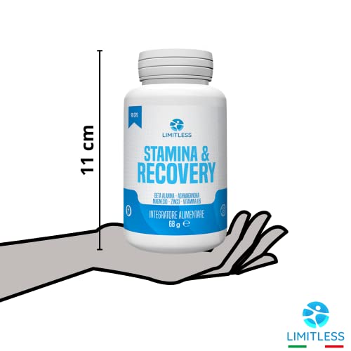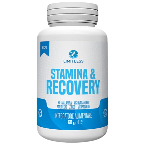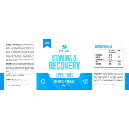 LIMITLESS Stamina & Recovery - Integratore completo Ashwagandha, Beta Alanina, Magnesio, Zinco e Vitamina B6-90 cps Naturali Vegane - Integratore alimentare per sportivi contro stress e stanchezza