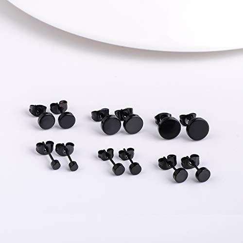 Limok Orecchini a cerchio da uomo in acciaio inox, per donna, Fakeplug Fake Plug pierced orecchini, nero, in acciaio inox, set da 3 - 8 mm, 6 coppie