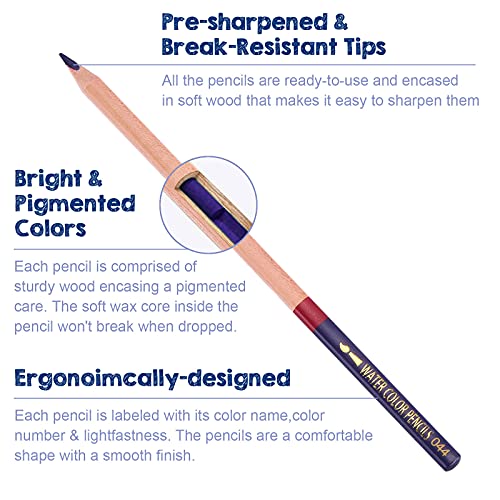 INCREDIBILE SET DI MATITE COLORATE: Le mine della matita sono state sufficientemente addensate per poter essere utilizzate in un ricco assortimento di tecniche ad acquerello. I loro colori sono così solubili in acqua che sono adatti per la pittura ad acquerello. La forma triangolare con design antiscivolo ti aiuterà a ottenere una migliore presa sul disegno.