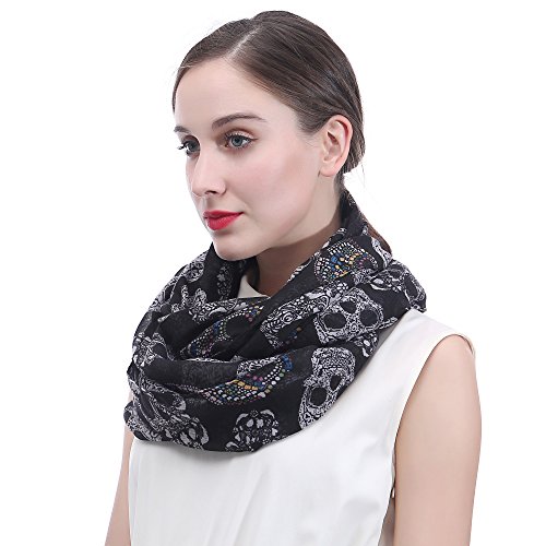 Lina & Lily Sciarpa ad Anello con Teschi di Zucchero (Nero)