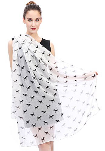 Lina & Lily Sciarpa Stola Donna con stampa Cani - Beagle (Bianco)