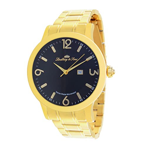 Lindberg & Sons LSSM204 Uomo Orologio da PoLSo con Datario Analogico al Quarzo Movimento Svizzero Bracciale in Acciaio Inox Color Oro