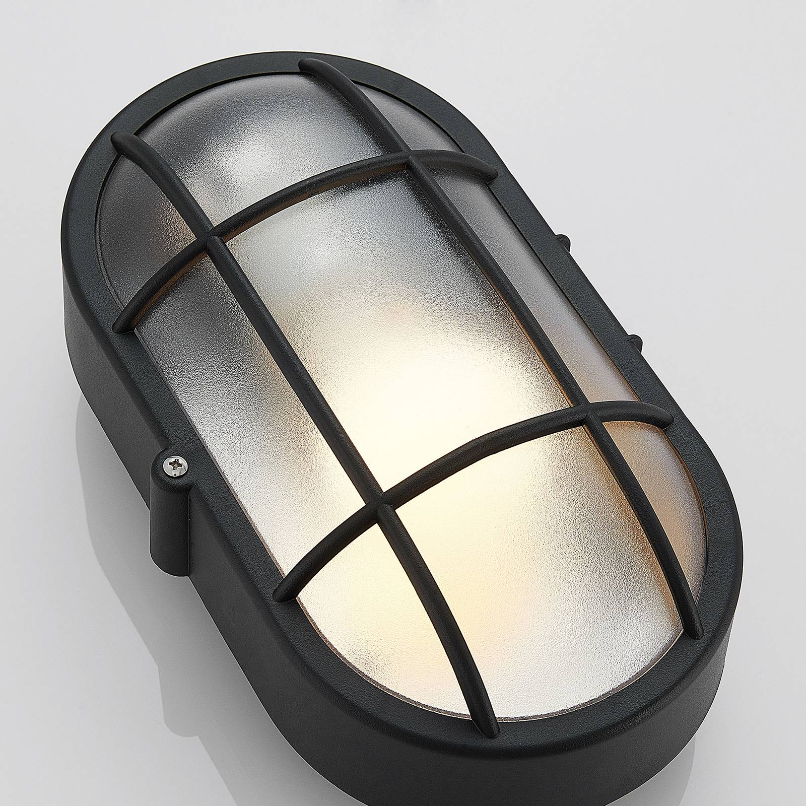 Applique da esterni Alisha di forma ellittica, con telaio nero e griglia, anticorrosione Alisha è un'applique da esterni costruita interamente in materiale plastico. La lampada è anticorrosione e particolarmente robusta, con una resistenza all'urto IK06. Il paralume è protetto da una griglia con finitura in neutro colore nero. Il paralume leggermente satinato ammorbidisce l'effetto della luce. Il funzionamento richiede una lampadina ad attacco E27, meglio se in efficiente tecnica LED. Una pratica lampada universale per esterni!