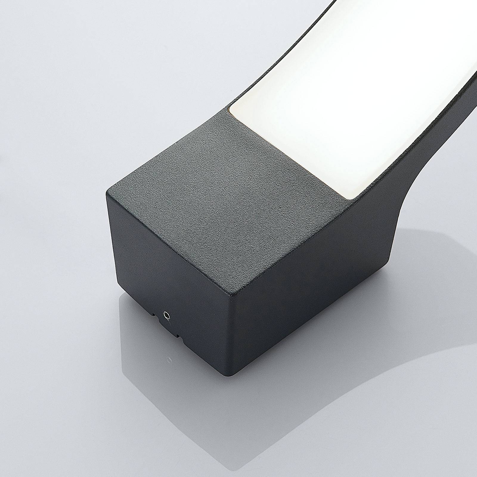 Applique LED da esterni Ilvita antracite di forma curva Con la sua forma leggermente curva, l'applique LED da esterni Ilvita illumina efficacemente il piano sottostante. I LED incorporati sono coperti da un diffusore di policarbonato opale che assicura una luminosità morbida e gradevole senza abbagliare. I LED emettono luce bianca di tonalità calda e vantano un'ottima efficienza energetica, vale a dire che danno molta luce e consumano poco. Lo stile minimalista della lampada si intona a un'ambientazione moderna.