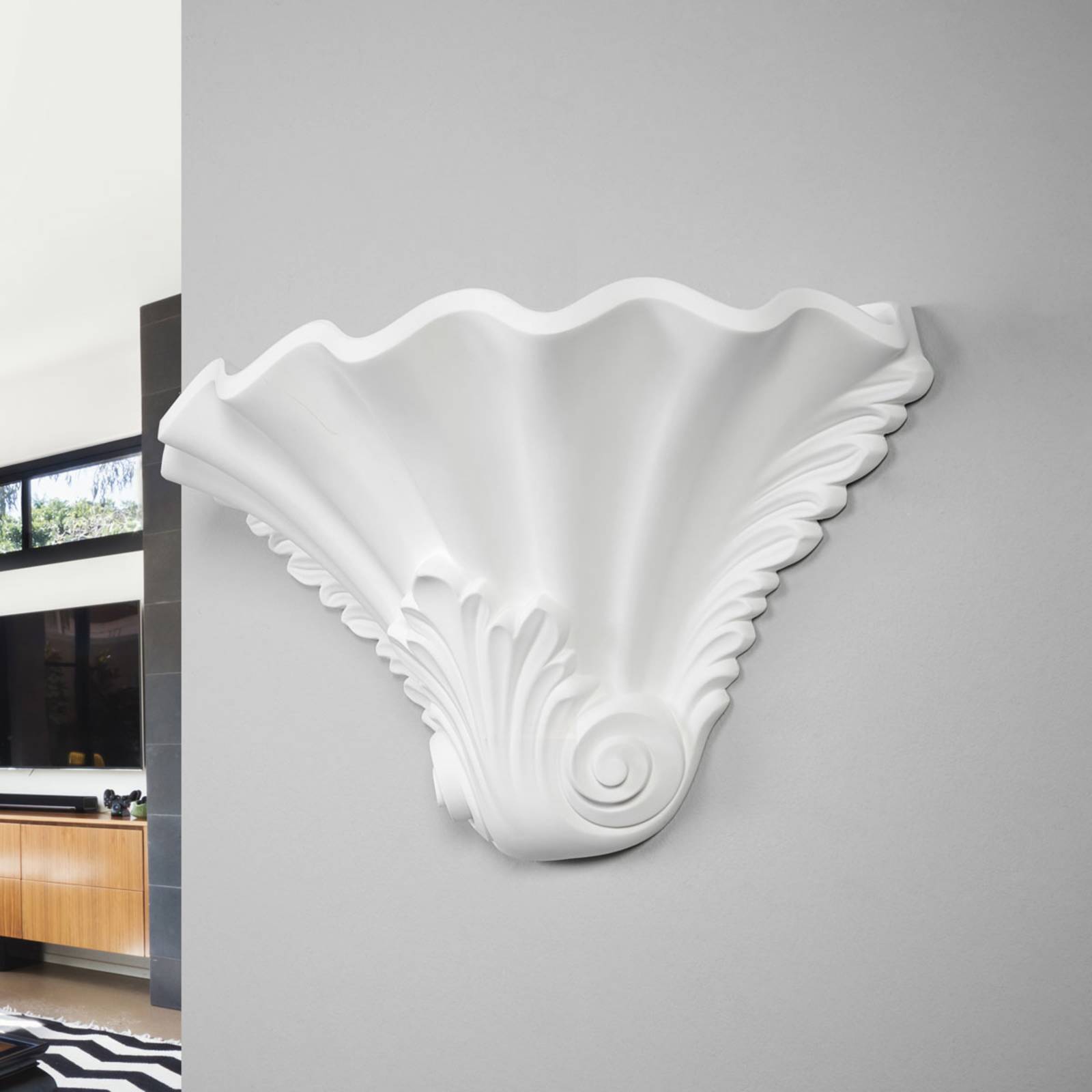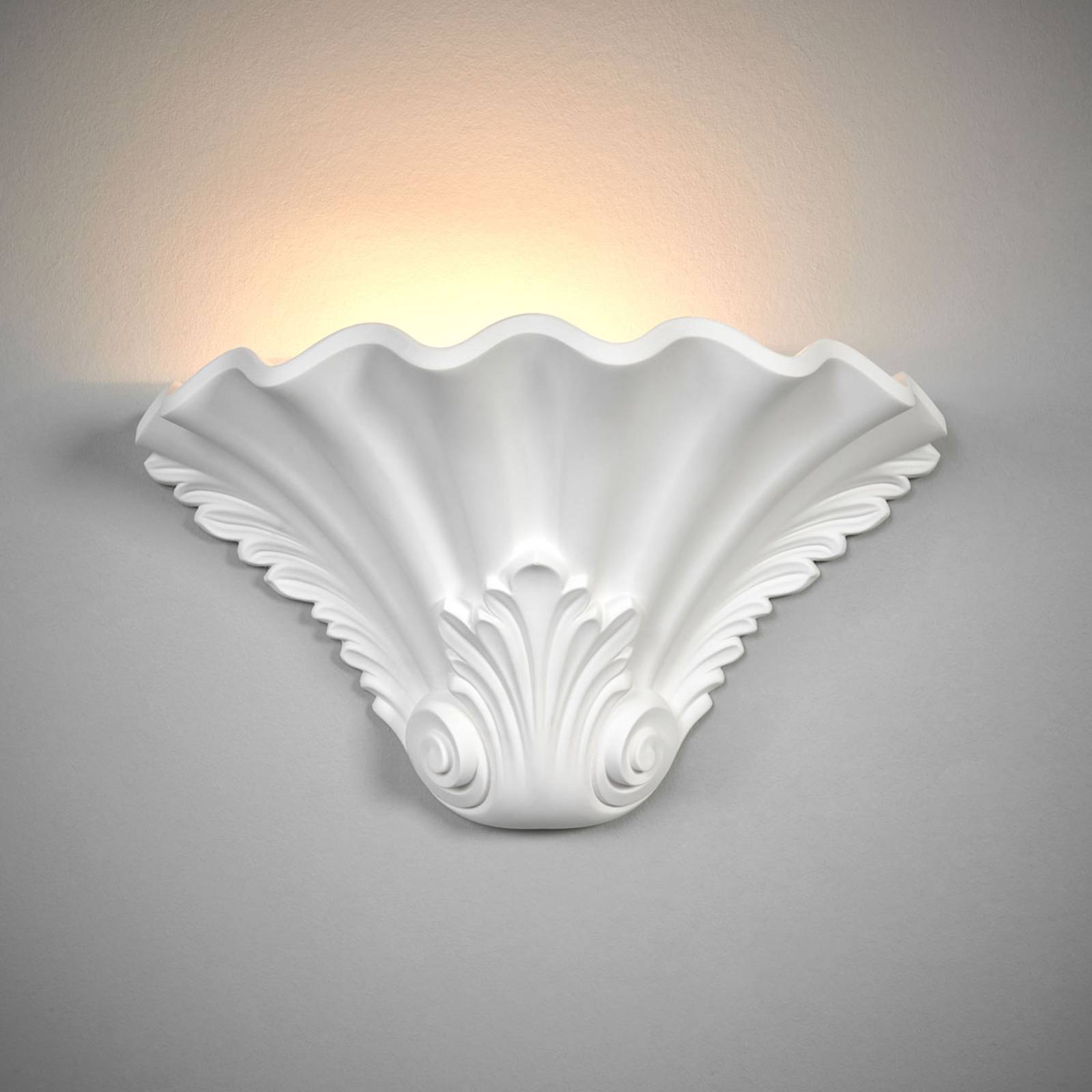 Splendida applique di gesso Lennet con il fascino dello stucco Lennet non è certo un'applique di forma abituale. La sua linea è spiccatamente classica, tale da ricordare gli artistici stucchi delle case nobili di una volta. Lo schermo a rilievo nasconde interamente le sorgenti luminose: pertanto si vede solo una luminosità indiretta e soffusa, da tutti percepita come molto accogliente e quindi ideale per una rilassante atmosfera di sfondo. Merita ricordare anche la superficie di gesso si può pitturare, dandole il colore più intonato all'ambiente in cui si trova.
