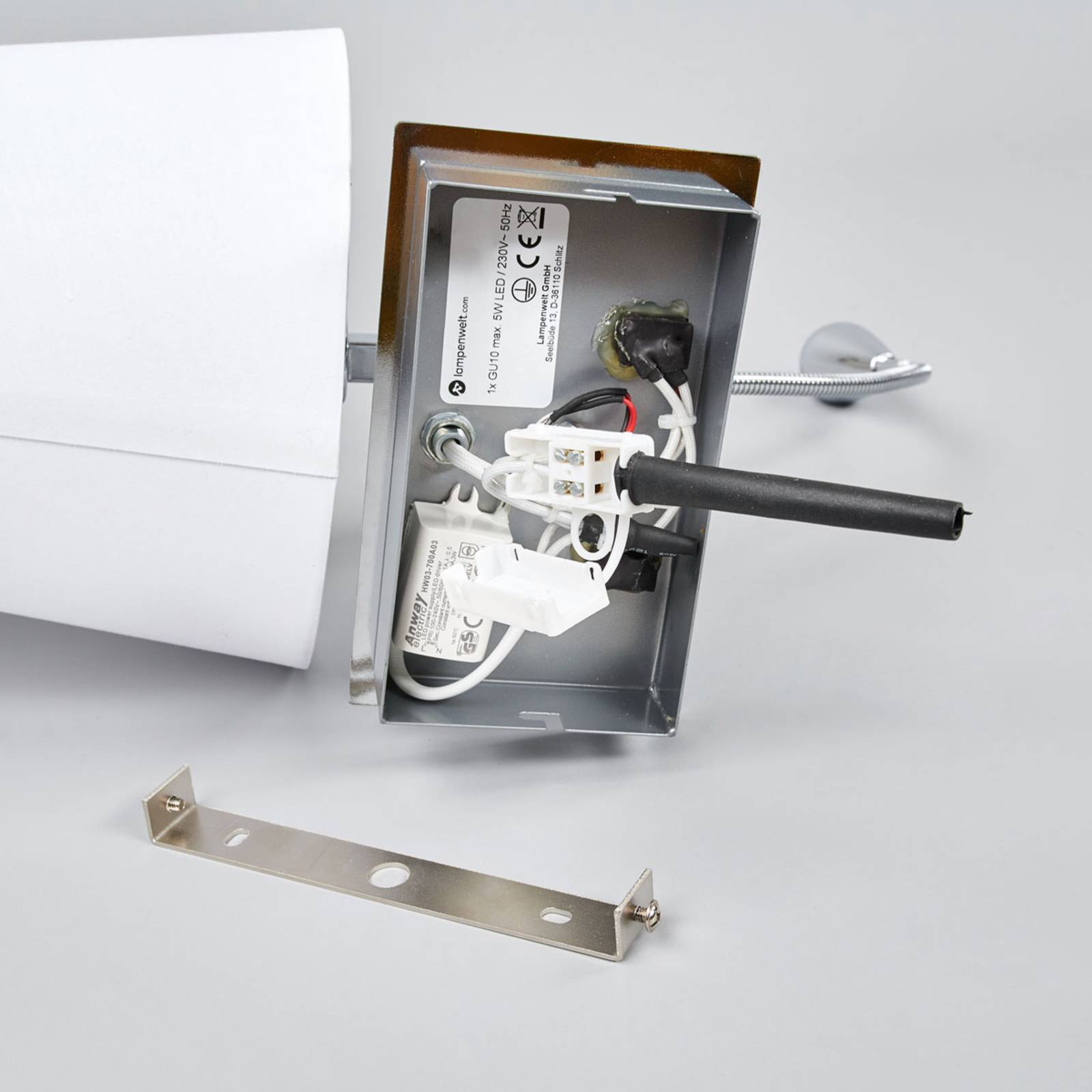 Applique in tessuto bianco Leonella con luce gradevole e lampada a LED da lettura integrata con braccio flessibile Leonella è un'applique con paralume in tessuto che si allarga alla base. Il tessuto bianco filtra la luce rendendola morbida e omogenea, adatta per creare atmosfera in soggiorno o in camera da letto. In entrambi gli ambienti è gradita la lampada da lettura integrata, che si avvale della tecnologia LED per produrre una luce intensa, ideale per leggere senza affaticare gli occhi. Il braccio flessibile che si snoda dallo stelo consente di orientare la luce del corpo illuminante secondo le esigenze. Questa struttura permette anche di creare un'illuminazione indiretta, semplicemente orientando la lampada verso l'alto. Le due fonti luminose di questa applique in tessuto possono essere comandate in modo indipendente con due interruttori a levetta montati sulla struttura cromata.