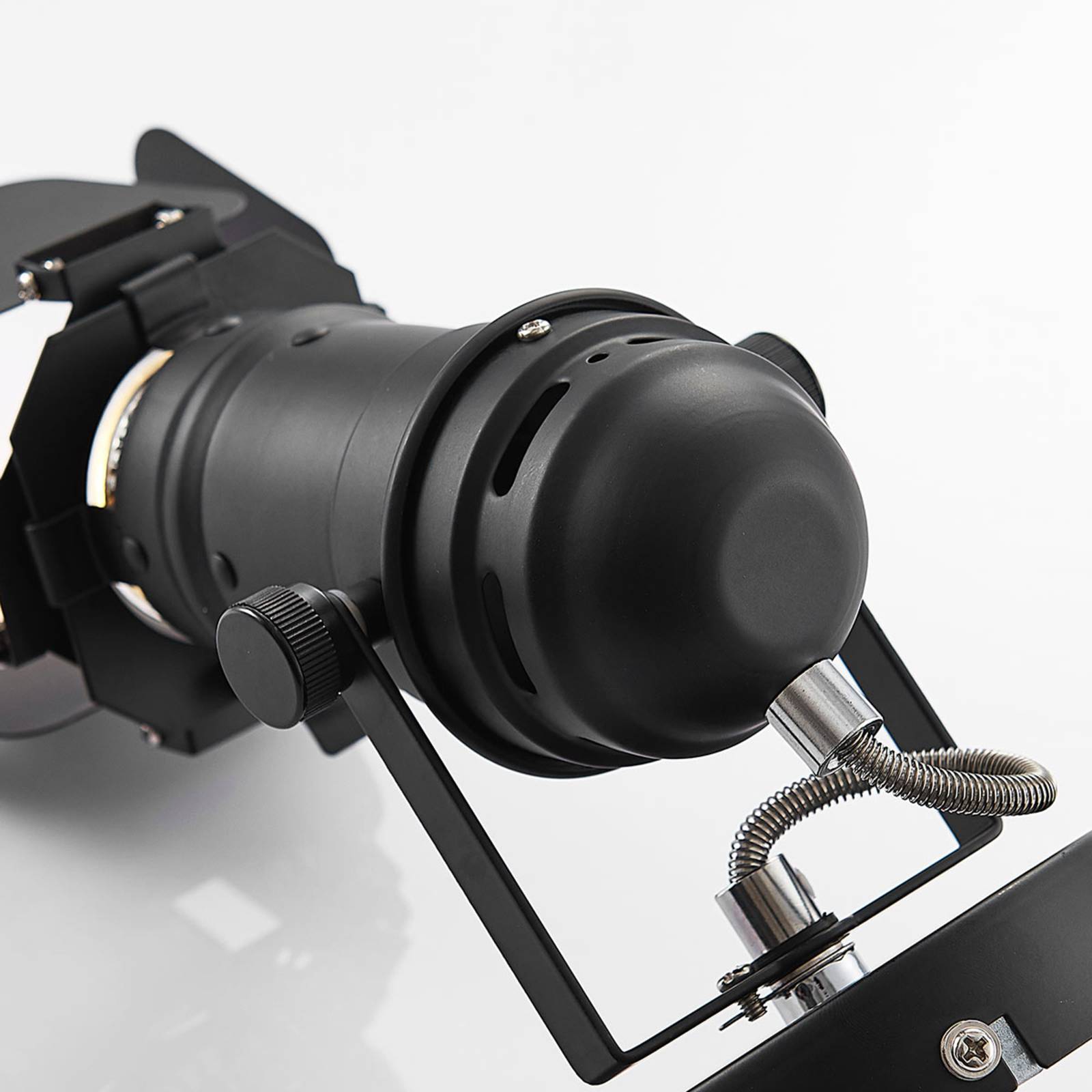 Giù le luci, spot on: applique Tilen a forma di proiettore Tilen è una moderna applique con un design che ricorda quello dei vecchi proiettori. Le quattro alette intorno alla lampada fanno pensare infatti a quei proiettori tipicamente usati sui palcoscenici. Le alette si possono muovere nella direzione preferita. Il colore nero satinato non fa che esaltare ulteriormente questo look industriale. L'applique Tilen è una lampada ideale per illuminare abitazioni moderne.