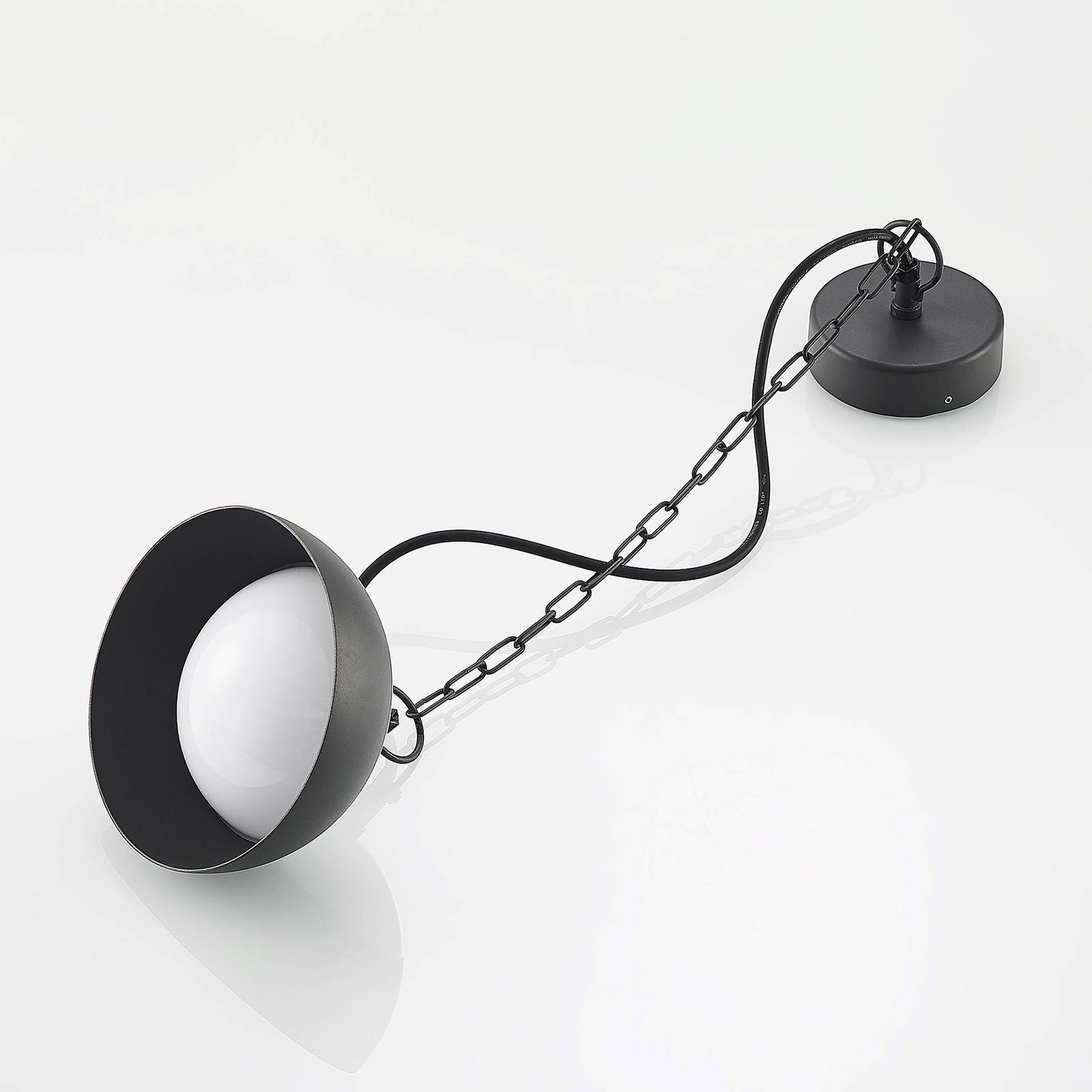 Lampada a sospensione a LED per esterni Bexley in alluminio con sospensione a catena Bexley trova la sua collocazione perfetta su una terrazza sopra un tavolo da pranzo e fornisce la luce necessaria per il pasto serale. È realizzata in alluminio grigio scuro e consiste in un paralume che viene fissato al soffitto tramite una catena. Il paralume è inoltre dotato di un diffusore in plastica che circonda i LED installati in modo permanente e garantisce un'illuminazione non abbagliante. La lampada a sospensione LED per esterni Bexley è protetta dalla polvere e dagli spruzzi d'acqua grazie alla classe di protezione IP54 ed è quindi adatta agli ambienti esterni coperti
