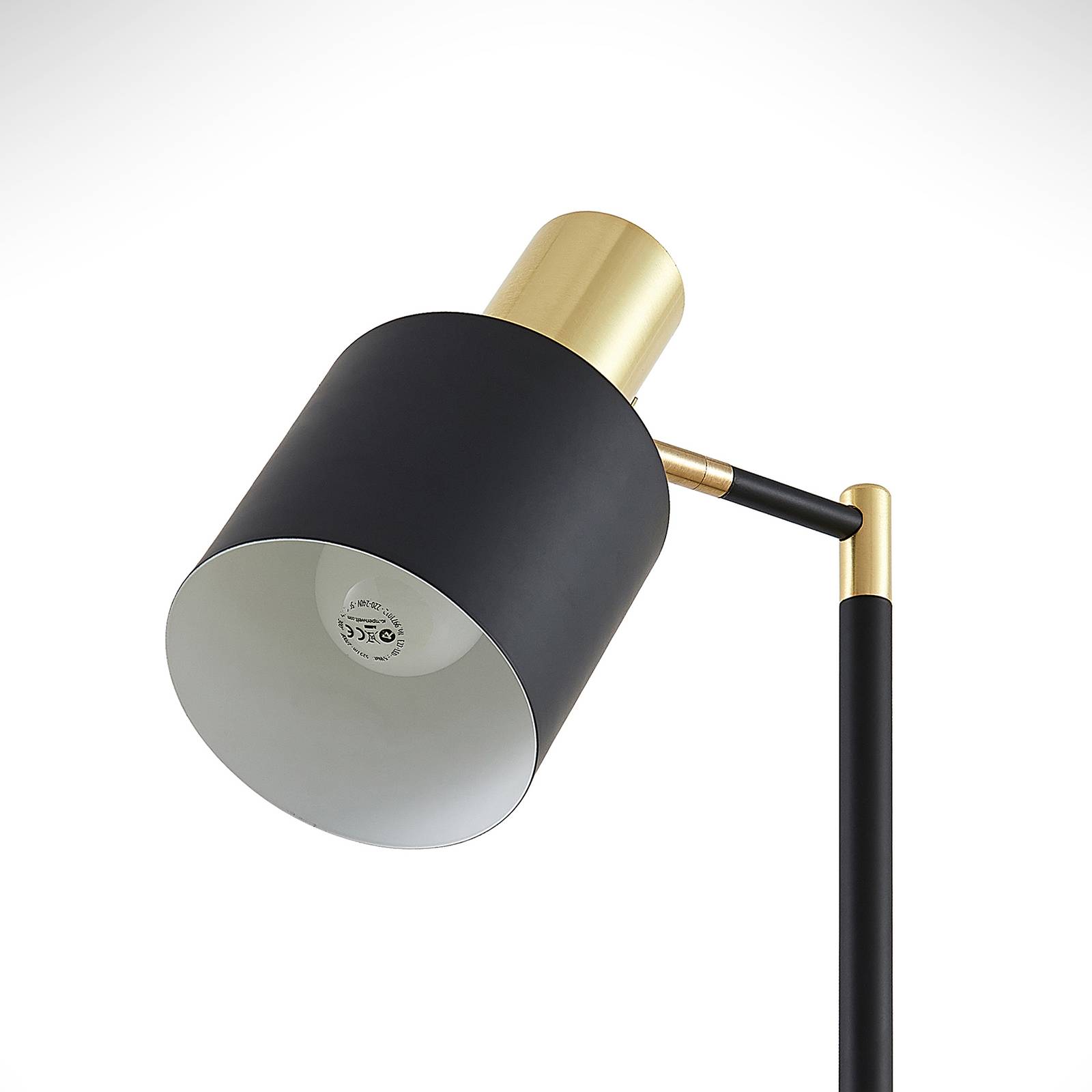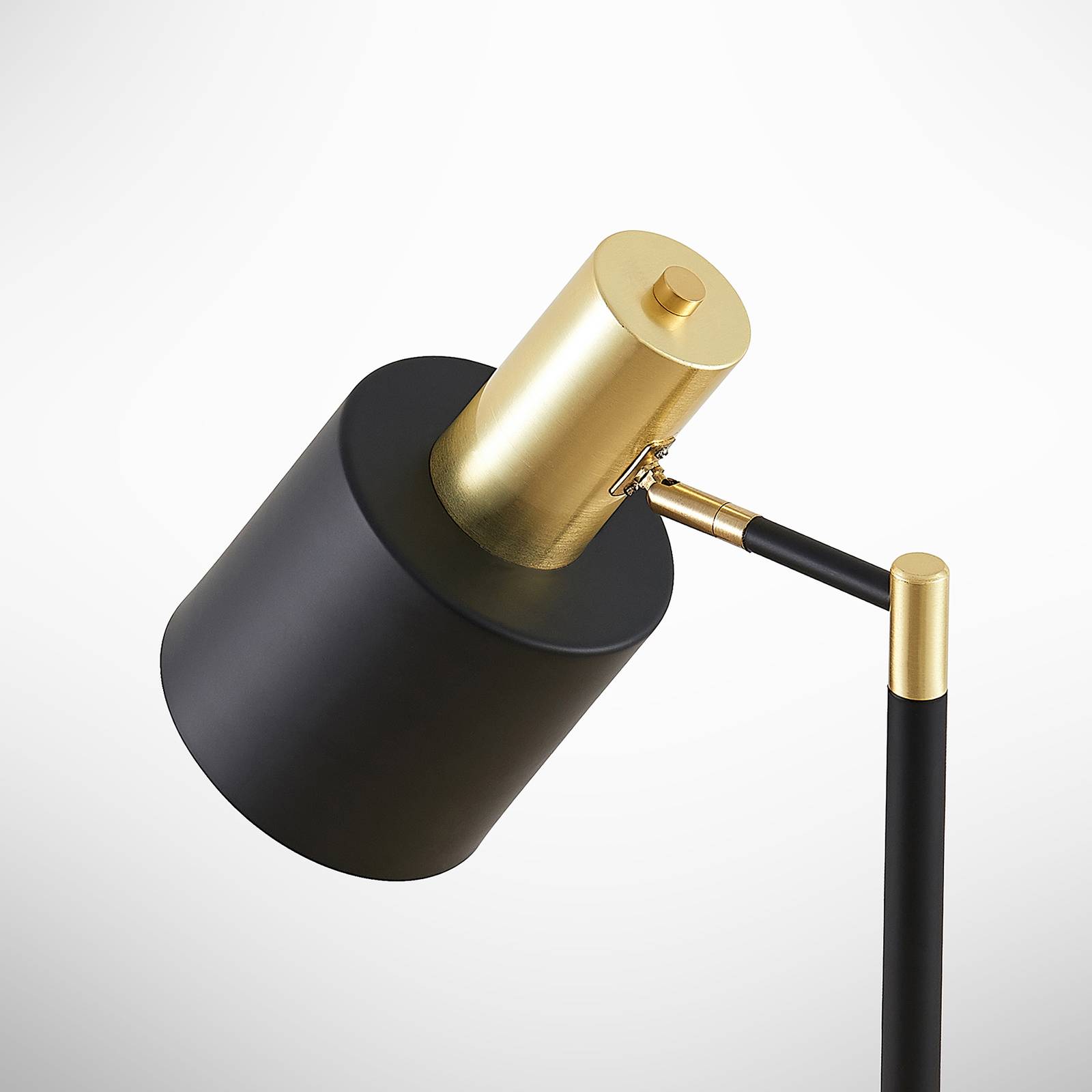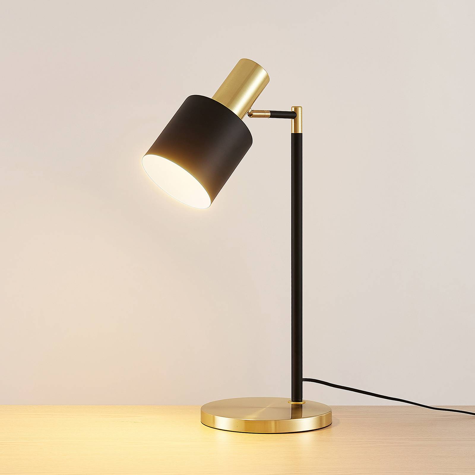 Graziosa lampada da tavolo Braska in nobile combinazione di colori Questa bella lampada ispira a prima vista con il suo fascino speciale. Realizzato in ferro robusto, il look è classico e nobile allo stesso tempo. La finitura superficiale combina l'intramontabile nero con l'ottone di alta qualità e valorizza immediatamente l'aspetto della lampada da tavolo Braska. Il paralume è di forma cilindrica, in modo che l'illuminante da utilizzare possa irradiare la luce direttamente sulla superficie del tavolo. Ciò garantisce un'eccellente illuminazione dell'area di lavoro o di lettura.