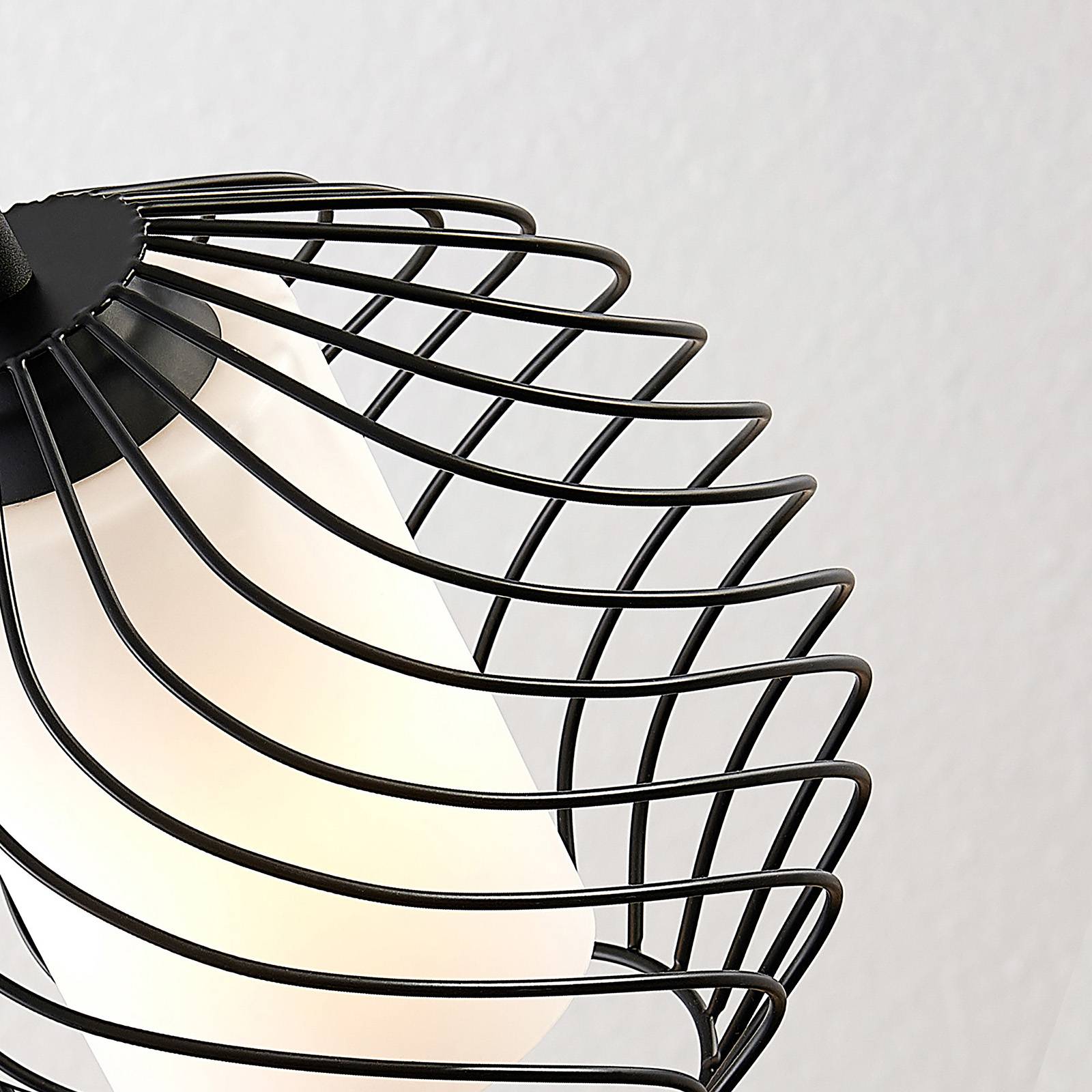 Lampada a sospensione sferica con paralume a forma di gabbia e vetro cilindrico Cedrice è ideale per l'illuminazione di un soggiorno e può essere integrata in molte stanze nella sua versione a 1 luce. L'elemento di schermatura esterna è stato realizzato a forma di gabbia e presenta tratti leggermente tondeggianti e ondulati, mentre al centro sopra la lampadina si trova un elemento in vetro bianco che permette alla luce di diffondersi delicatamente e di apparire più piacevole. Questa lampada è un'elegante fonte di luce per molti punti di relax della casa.