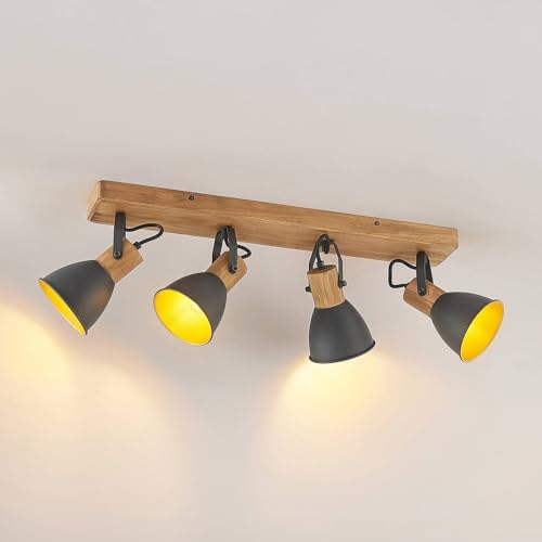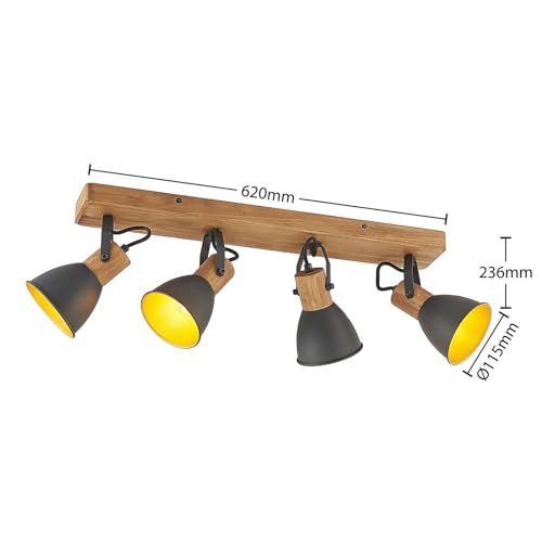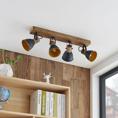 Lindby Faretto 'Merela' dimmerabile (Scandinavo) colore Nero, in Legno ad es. Soggiorno & Sala da pranzo (4 luci, E14) Lampada da incasso, plafoniera, applique