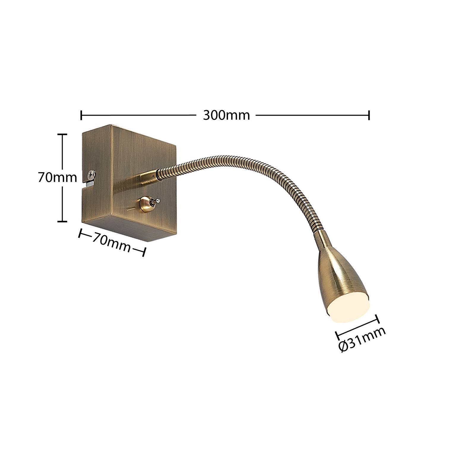 Applique LED Jolka per leggere piacevolmente Con la lampada LED Jolka si legge piacevolmente fino a tarda ora. Quando fuori si fa buio lentamente, è il momento di usare Jolka. Il supporto è munito di un piccolo interruttore a levetta. Gli efficaci LED illuminano una piccola superficie. Poiché il braccio è flessibile, la luce si direziona nel modo preferito. Il fatto che la lampada sia dotata di una copertura satinata è particolarmente positivo. Si ha infatti una luce intensa ma che non abbaglia.