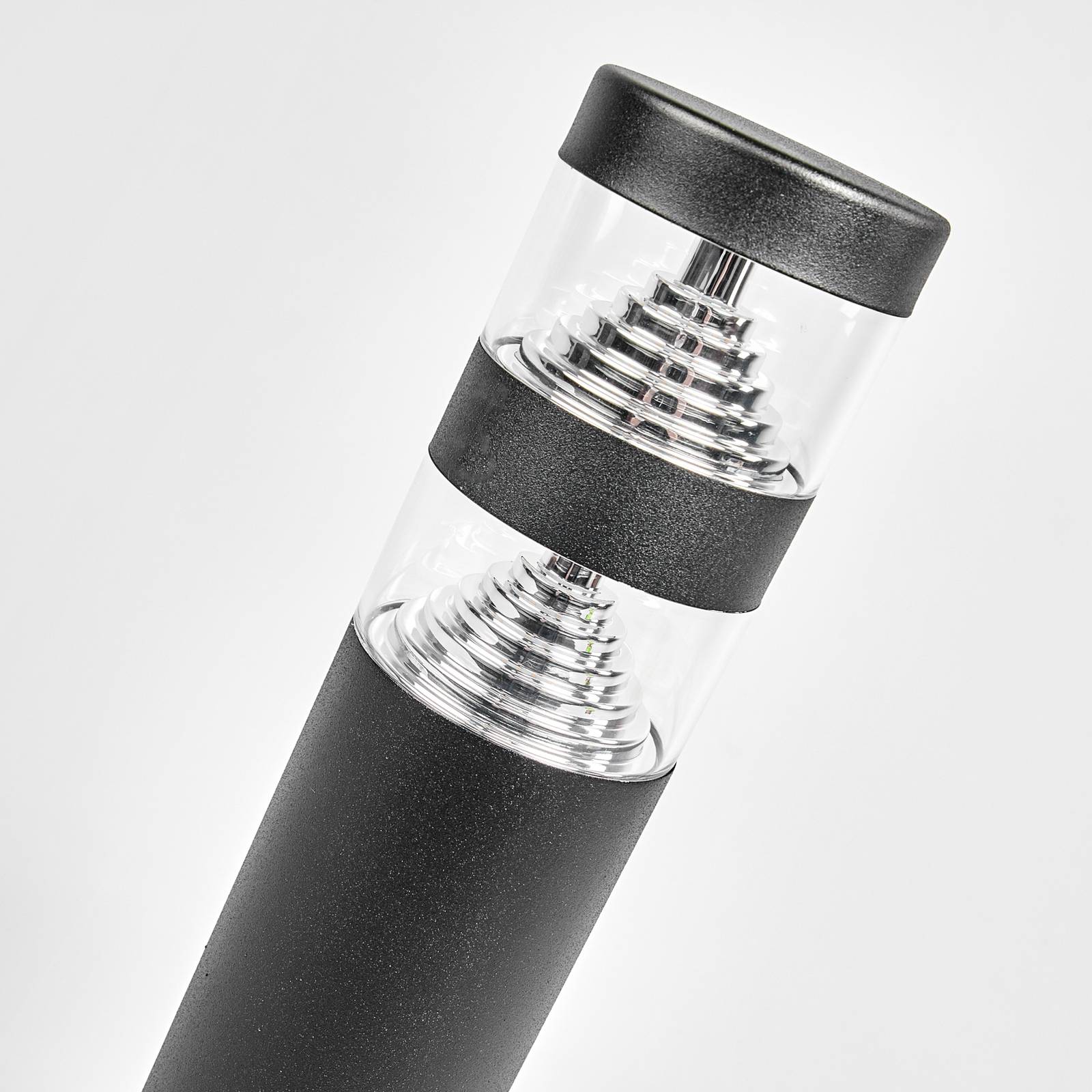 Lampada da appoggio LED Lanea di colore nero, con riflettori graduati Lanea genera una bella illuminazione, naturalmente molto apprezzata all'esterno. Le sorgenti LED sono disposte in alto e puntano la loro luce calda verso il basso, su riflettori di forma graduata. Ne deriva una morbida schermatura, con l'impressione che la lampada sia avvolta in anelli luminosi. Lanea si presta al montaggio su muretti e sporgenze, da dove assicura buon orientamento e risparmio energetico.