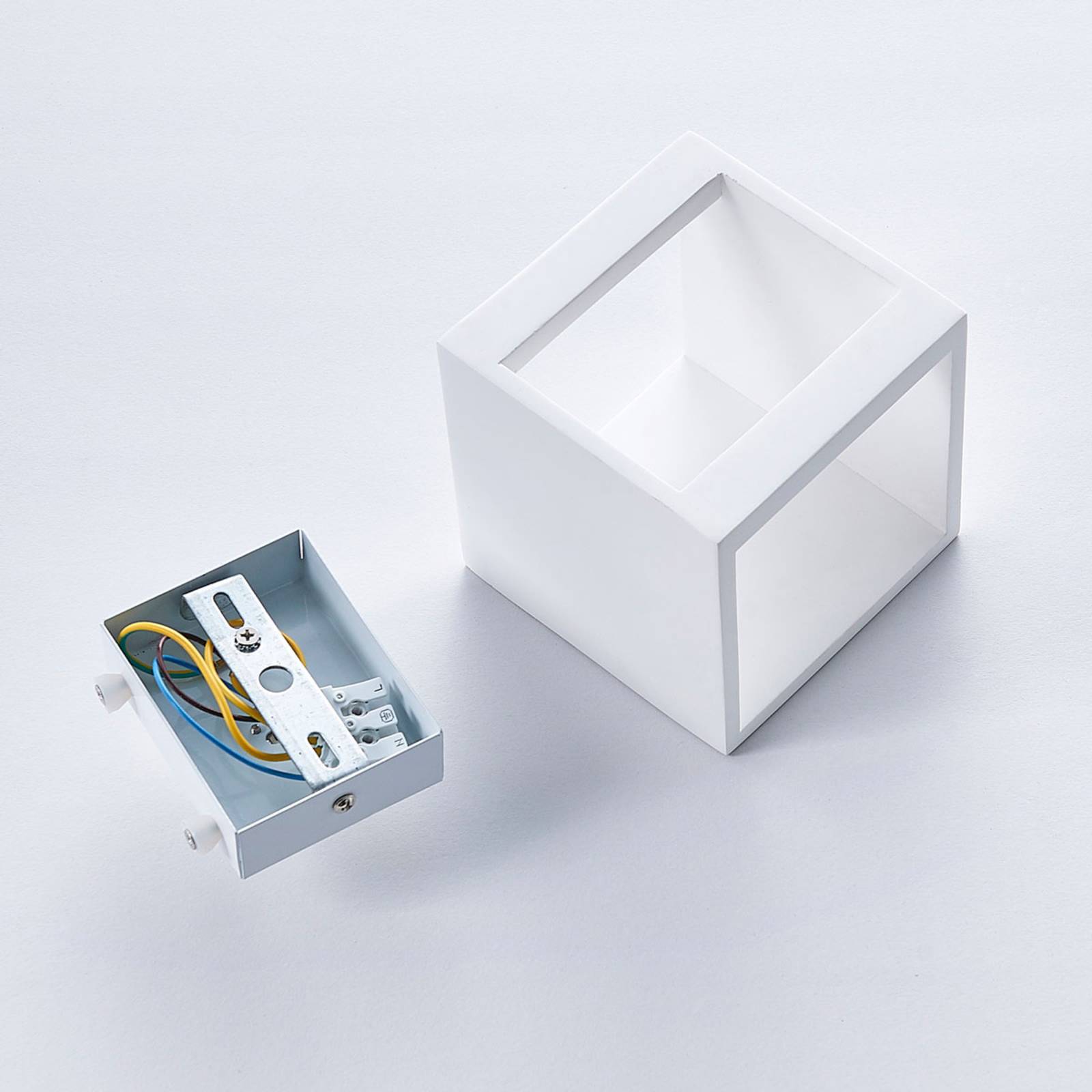 Apparecchio dimmerabile in gesso Kay con superficie bianca Kay è un attraente apparecchio in gesso dal design moderno. Se volete, potete anche dipingere il corpo illuminante a forma di cubo, realizzato in gesso, per adattarlo all'ambiente circostante. Una bella aggiunta a corridoi, soggiorni e camere da letto, con luce verso l'alto e verso il basso.
