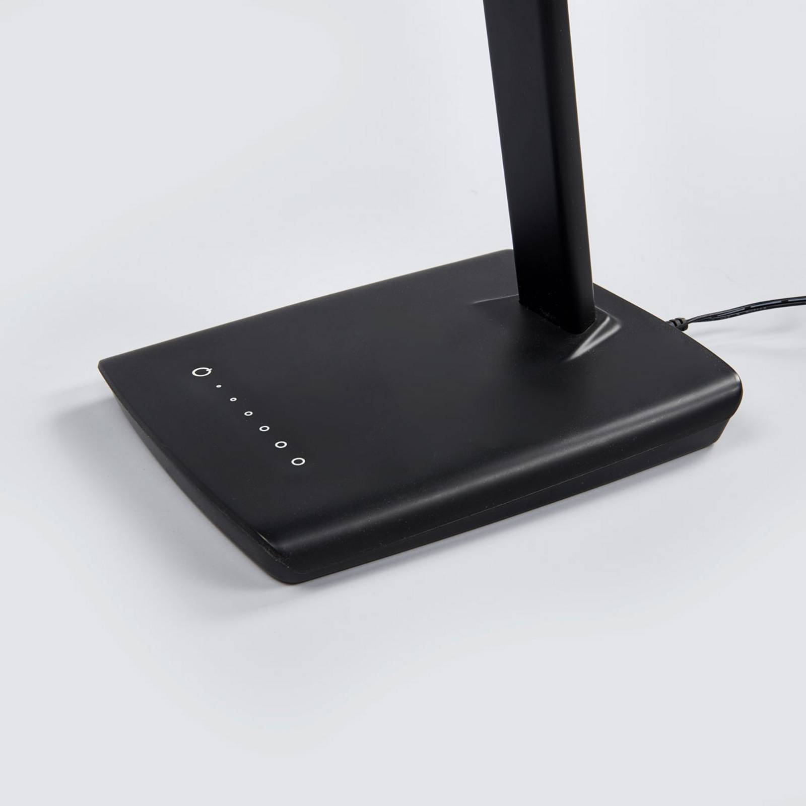 Lampada da scrivania a LED Kuno nera con connessione USB e dimmer a sfioramento Kuno è una lampada da scrivania altamente funzionale che si distingue per diversi aspetti. Ad esempio, la lampada da scrivania a LED è dotata di una funzione touch integrata che funge sia da interruttore che da dimmer. Inoltre, è possibile cambiare la direzione del braccio della lampada, modificando così anche l'emissione luminosa. Se si desidera ricaricare lo smartphone mentre si lavora, è sufficiente un cavo USB e si può ricaricare il cellulare tramite la connessione corrispondente sulla lampada. Inoltre, i LED non sono solo a risparmio energetico, ma anche molto luminosi e forniscono una buona illuminazione della superficie di lavoro, in modo da poter leggere e lavorare con concentrazione.