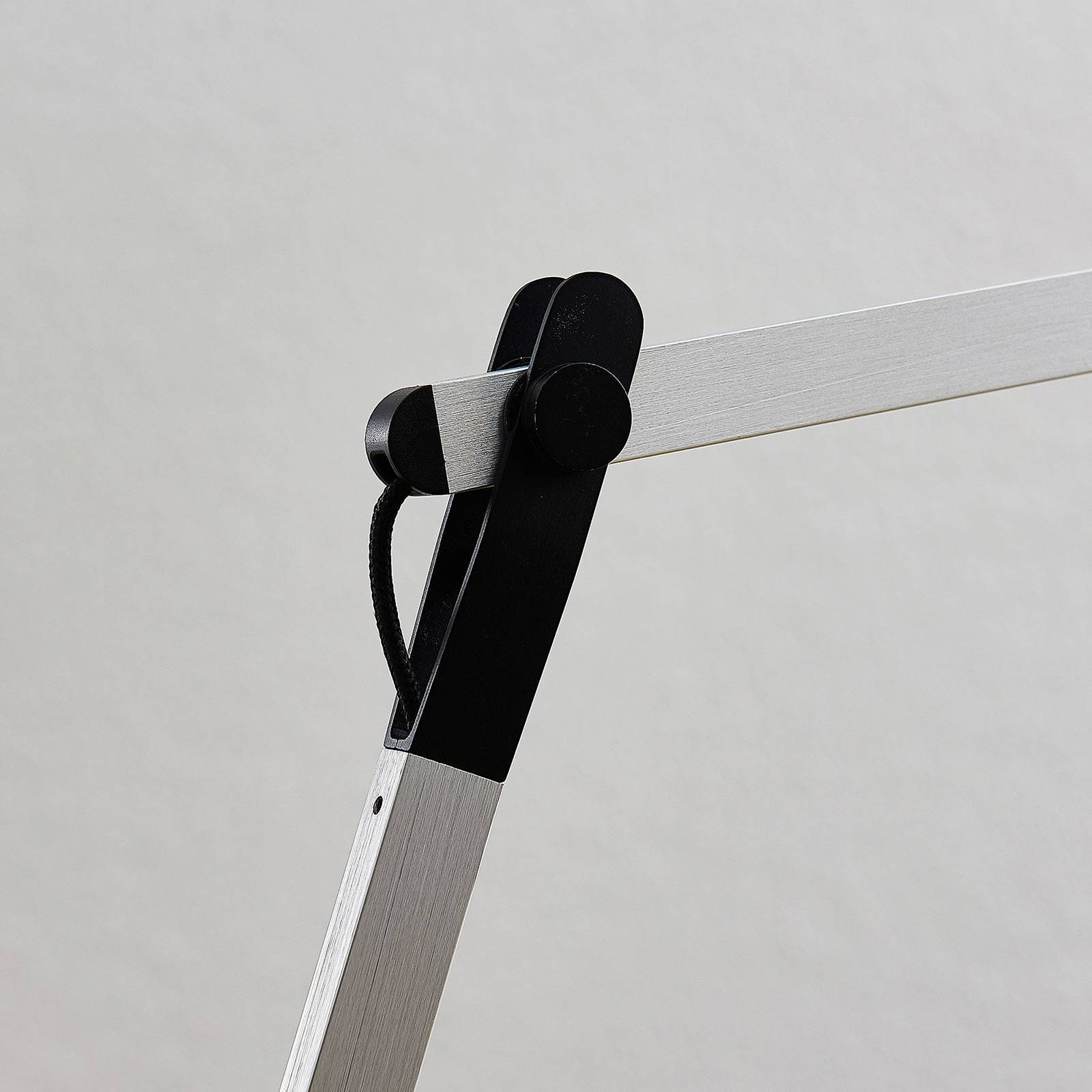 Lampada LED da scrivania regolabile, con paralume rotondo e touchdimmer per tre livelli Rilana ha tre snodi che permettono di ruotare e inclinare la lampada concentrando il fascio nella direzione che serve. La lampada è concepita per una scrivania e serve a leggere sempre bene documenti e altri scritti. Con un touchdimmer non solo si accende e spegne la luce ma la si regola anche a tre livelli d'intensità. Il funzionamento in tecnica LED assicura ottima efficienza energetica e lunga durata. Il piedistallo e il paralume sono in parte di colore nero, in parte in un moderno color argento.